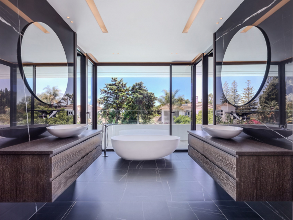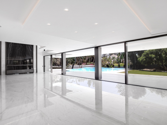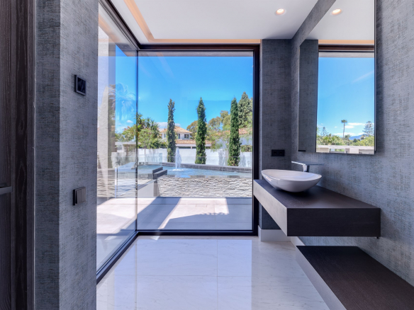 This luxurious villa with its exquisite avant-garde design is located in the quiet and peaceful neighborhood of Casasola, near by Guadalmina Baja.